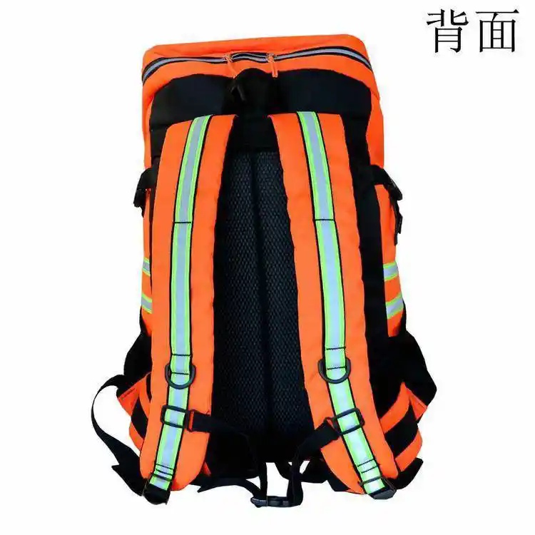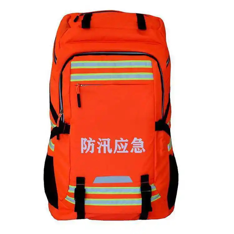 品名:防汛应急包 材质:600D防水牛津布 规格:650*400*300mm(大) 容积:65L 重量:整套约9KG 拉链:防水反光夜光 外观:四周双色反光条